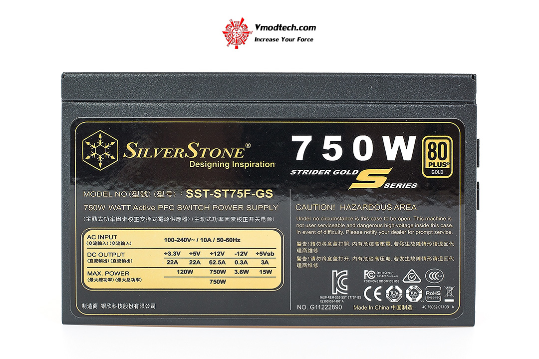SilverStone Strider Gold S Series ST75F-GS เป็น Power Supply แบบ ATX 12V นะครับ มี DC Output 750W การันตีความนิ่งด้วย 80 PLUS® Gold