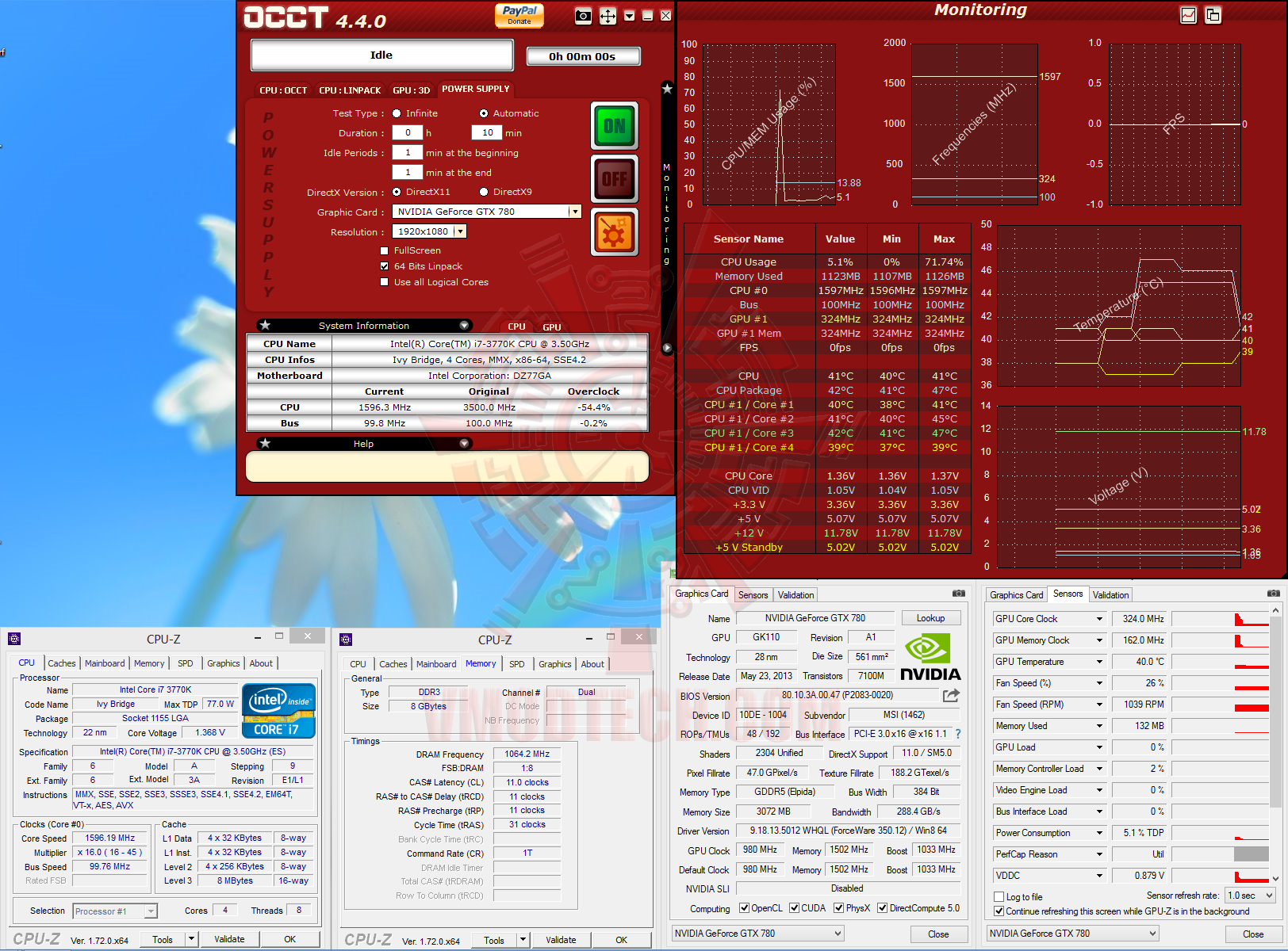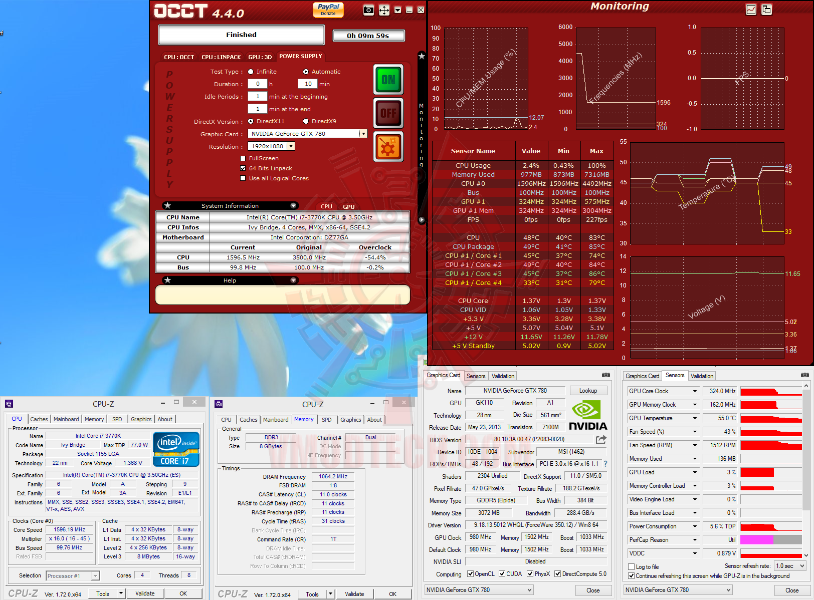 วันนี้จะ ใช้ CPU I7 3770K ครับ Overclock ไปที่ 4.5 GHz ใช้ไฟเลี้ยงเกินขนาดไปที่ 1.35 V ครับ ต่อกราฟิกการ์ด MSI Geforce GTX780 Lightning