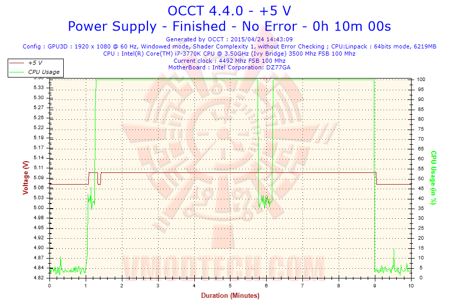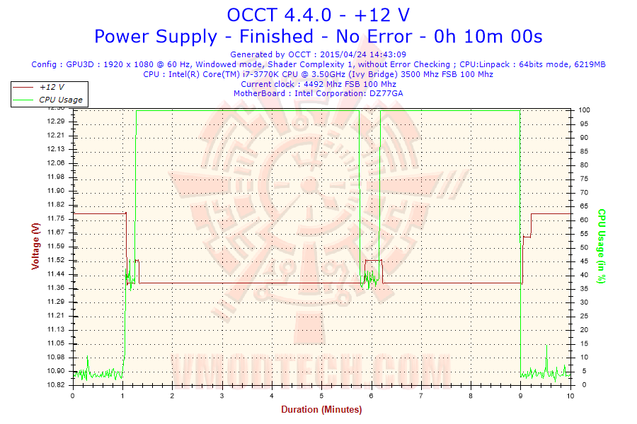 ระบบดึงกำลังไฟจากปลั๊กไฟบ้านเต็มที่ ที่ประมาณ 428 วัตต์ตอน Full Load ด้วย OCCT