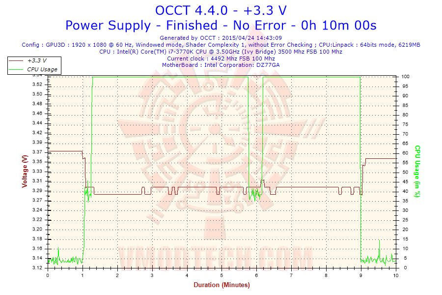 พิจารณาไฟ +3.3V ไม่มีโหลดอยู่ที่ประมาณ 3.37V ระหว่างมีโหลดตกลงมาที่ประมาณ 3.29V-3.0V ครับ