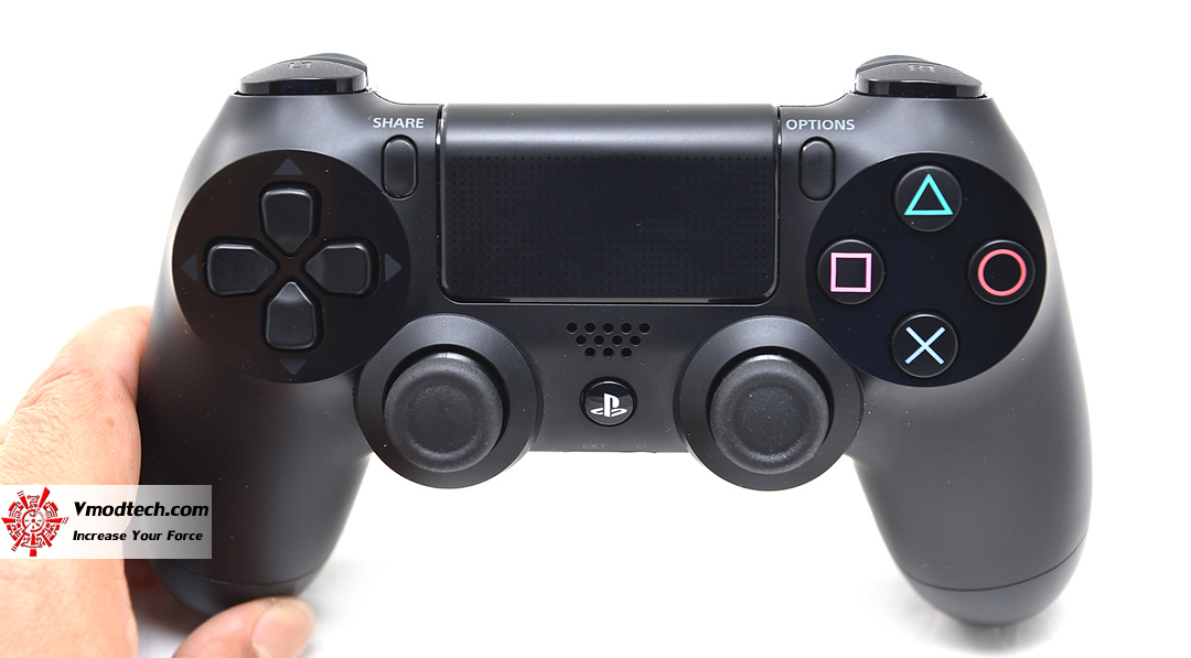 หน้าตาเต็มๆของ DualShock 4 controller สวยงามและดูกระชับดีมากกับการขึ้นลายโคงบนตัว