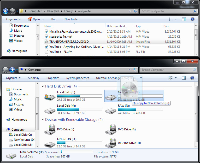 | โยนไฟล์จาก HDD ลูกที่สองไปลูกแรกผ่านทาง SATA III P67 | ... | โยนไฟล์จาก HDD ลูกที่สองไปยังลูกแรกผ่าน USB 3.0 โดย BlacX Duet 5G |