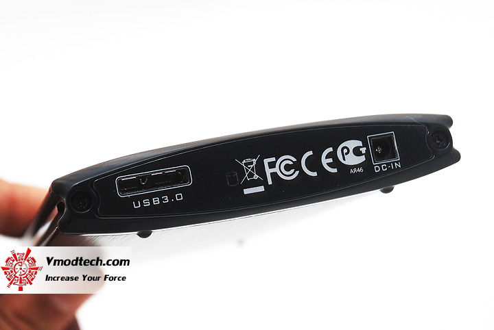 ด้านท้ายของกล่องครับ จะเห็นว่ามีช่องเสียบ USB 3.0 และช่องต่อ DC เพื่อจ่ายเพิ่มให้กับตัว HDD กรณีไฟอาจจะไม่พอสำหรับ HDD ที่มีขนาดใหญ่ๆครับ