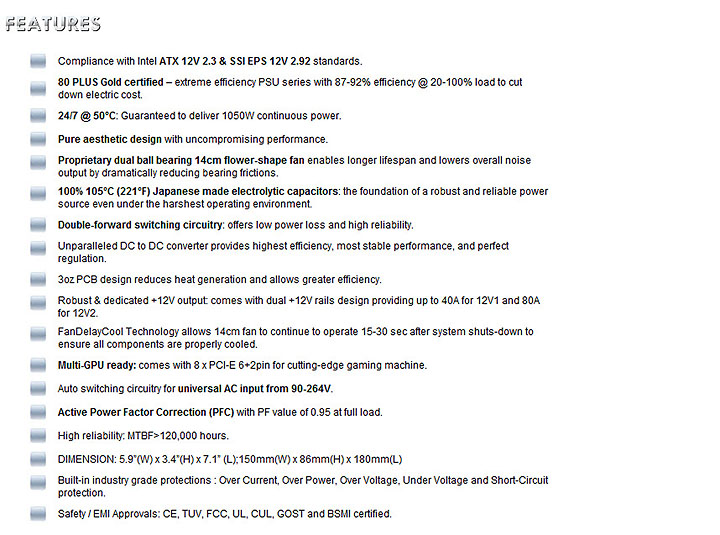 feature-1 . feature-2 สเปกสมกับเป็นรุ่นใหญ่จริงๆ กับ 12V สองเรล เรลแรกจ่ายได้สูงสุด 40 แอมป์ ส่วนเรลที่สองจ่ายได้สูงมากถึง 80 แอมป์ พร้อมทั้งใบพัดที่ออกแบบมาเป็นพิเศษ ทำให้เสียงพัดลมเบาและได้ลมแรงมากกว่าครับ .