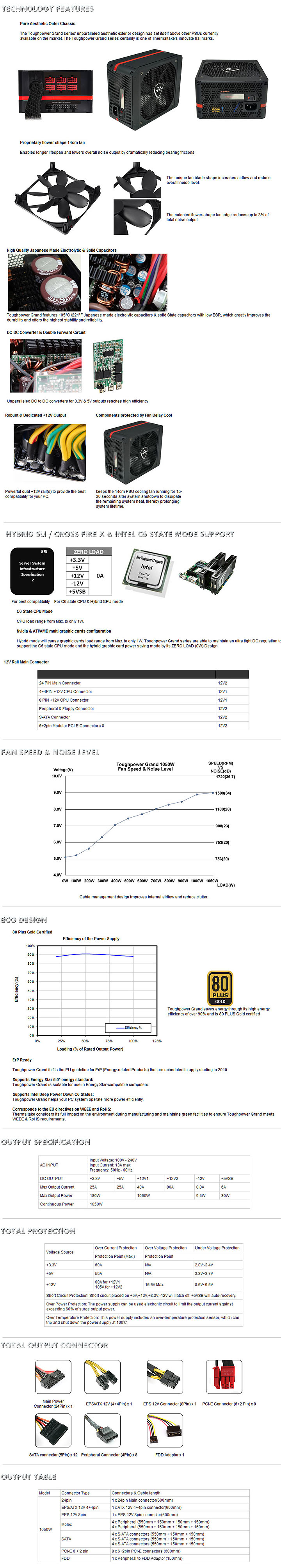 . main1 สวัสดีครับ วันนี้มี Power Supply ขนาดใหญ่ที่มาพร้อมกับดีกรี 80 PLUS Gold มาพูดให้ฟังกันครับ สำหรับ Power Supply จากแบรนด์ Thermaltake นั้นก็ผลิตออกมาหลากหลายซีรีย์ด้วยกัน สำหรับ Tough Power ที่จะพูดถึงในวันนี้จะเป็น Thermaltake Toughpower Grand 1050W พี่รองในตระกูล Power Supply ของ Thermaltake ครับ . เรามาชมเสปกจากเว็บ Thermaltake กันก่อนเช่นเคย thermaltakeusa.com .