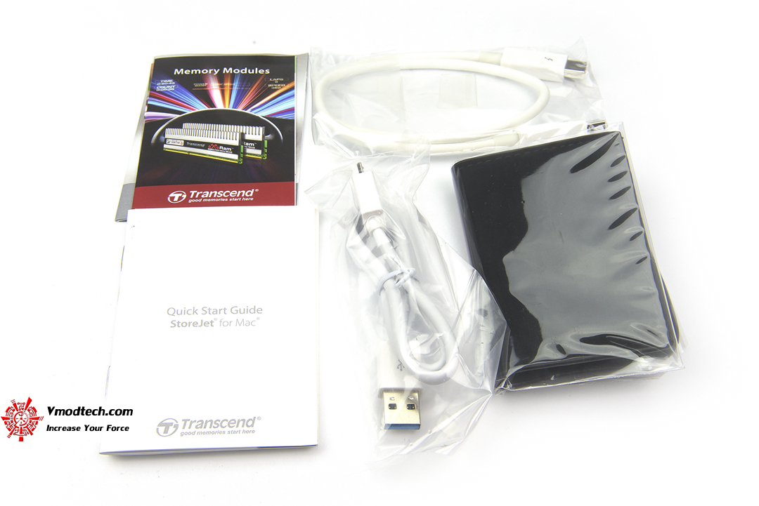 อุปกรณ์ภายในนั้นมีสายสำหรับการเชื่อมต่อแบบ USB 3.0 และ Thunderbolt รวมถึงคู่มือแผ่นพับและซองหนังบางๆสำหรับเอาไว้ใส่ SSD ไปนอกสถานที่