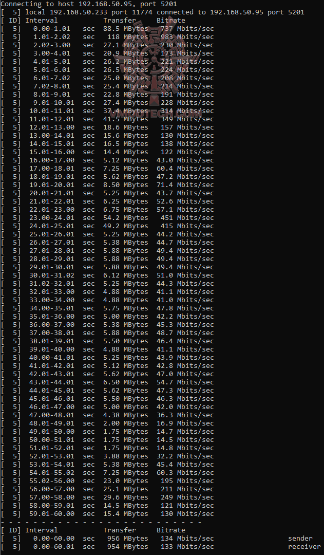 ด้านฝั่ง Server จะได้ที่ 133 Mbps