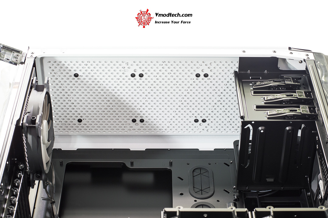 ด้านบนติดตั้งพัดลม 140mm 3 ชิ้น หรือ พัดลม 120mm 3 ชิ้น เพิ่มเติมได้ หรือจะใส่เป็นหม้อน้ำสำหรับ CPU Cooler ก็น่าสนใจครับ ใส่หม้อน้ำ เย็น 3 ตอนได้แบบไม่มีปัญหา