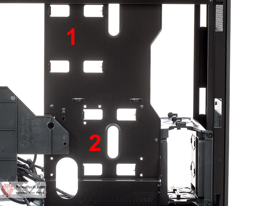 ด้านหลังแผ่นรอง M/B สามารถติดตั้ง Drive Bays 2.5" 2 ช่อง