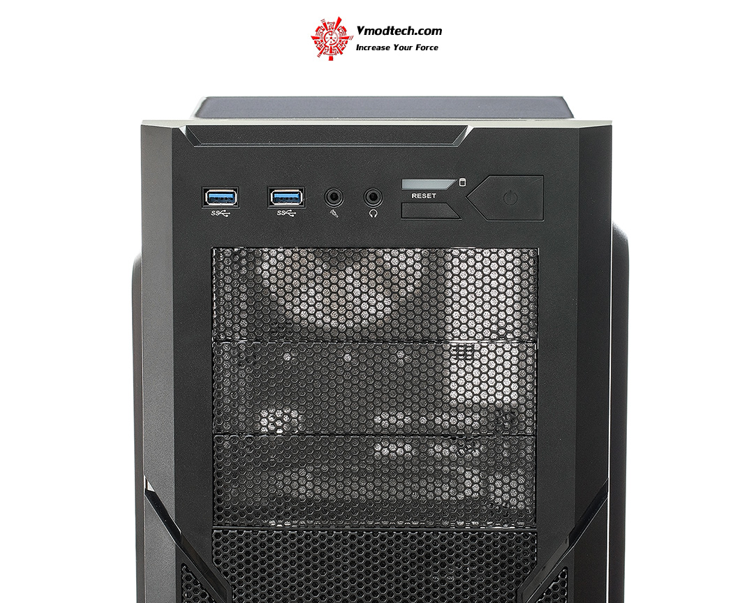 ด้านบนสุดเป็น Front Panel มี Power Switch, Reset Switch, Audio, Mic, USB 3.0 2 ช่อง