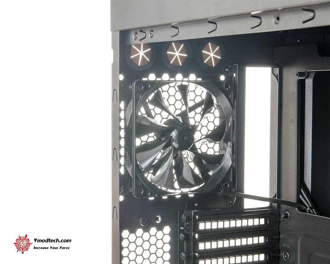 ด้านบนเปิดเป็นช่องระบายความร้อน สามารถติดตั้งพัดลม 120mm. หรือ 140mm. ได้ถึง 3 ตัว หรือ 200mm. 2 ตัว