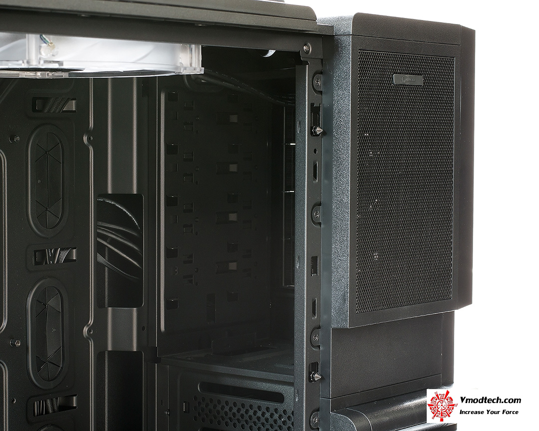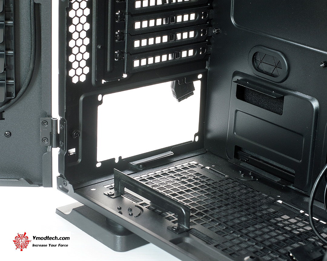 ดูด้านล่างภายในกันหน่อย นอกจากพื้นที่วาง PSU แล้ว ข้างๆสามารถเพิ่มพัดลม 120 x 120 x 25 mm ได้ 1 ชิ้นครับ
