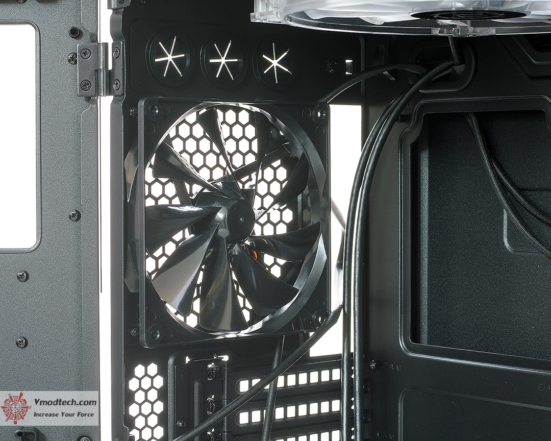ด้านบนมี 200 x 200 x 30 mm Colorshift fan (600~800rpm, 13~15dBA) 1 ชิ้นครับ ตัวนี้เป็นพัดลมไฟ LED มีหลากสีนะครับ มี Red-Blue-Green และ Mixed Color Flash Mode