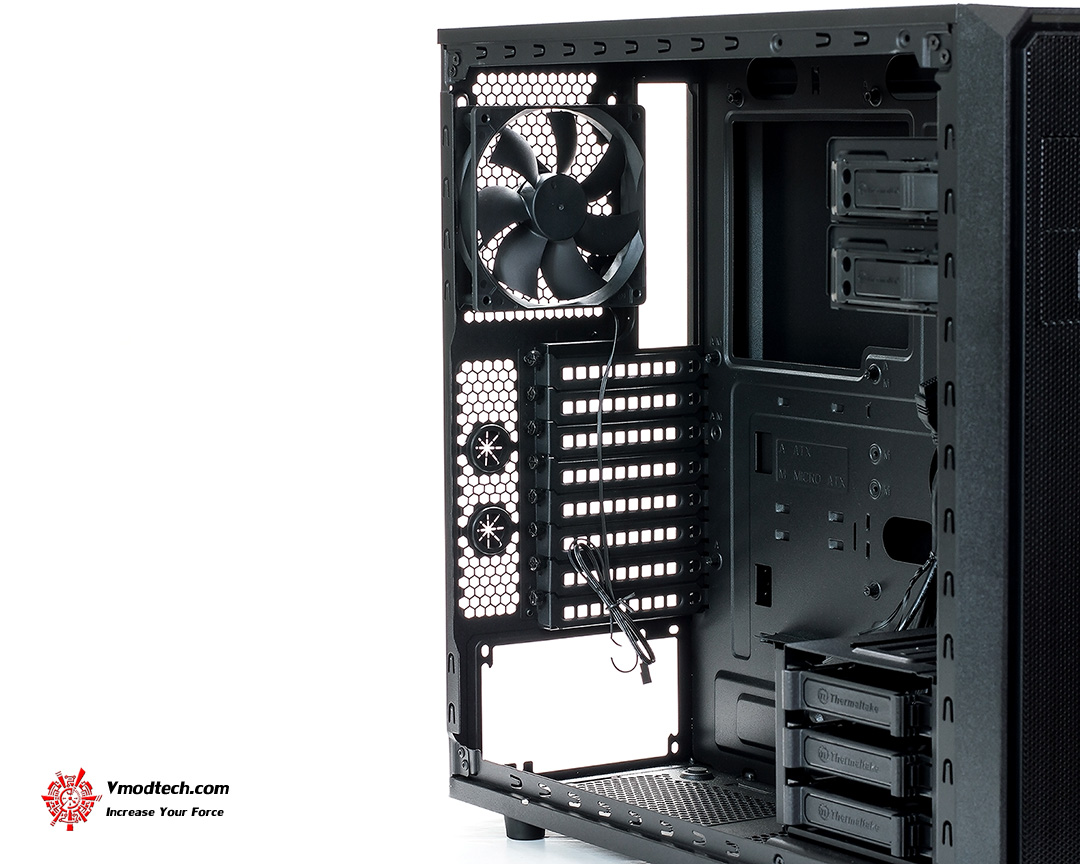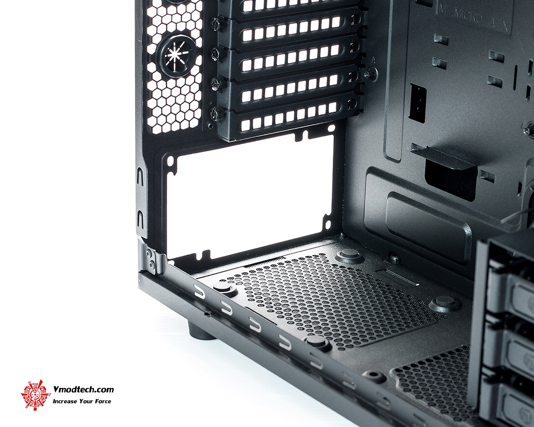 ดูด้านล่างภายในกันหน่อย สามารถติดตั้งพัดลม 120mm. เพิ่มได้ 2 ตัวครับ โดยอีก 1 ตัวถ้าจะใส่ต้องถอด HDD rack ออก