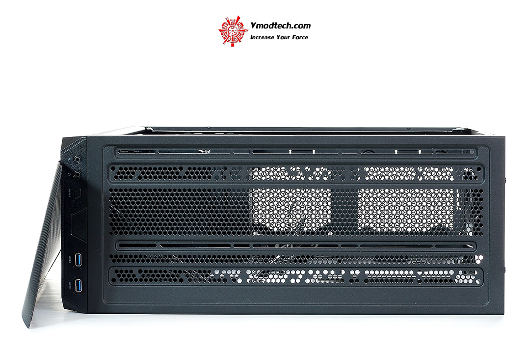 ด้านบนเปิดเป็นช่องระบายความร้อน สามารถติดตั้งพัดลม 120mm. หรือ 140mm. ได้ถึง 3 ตัว