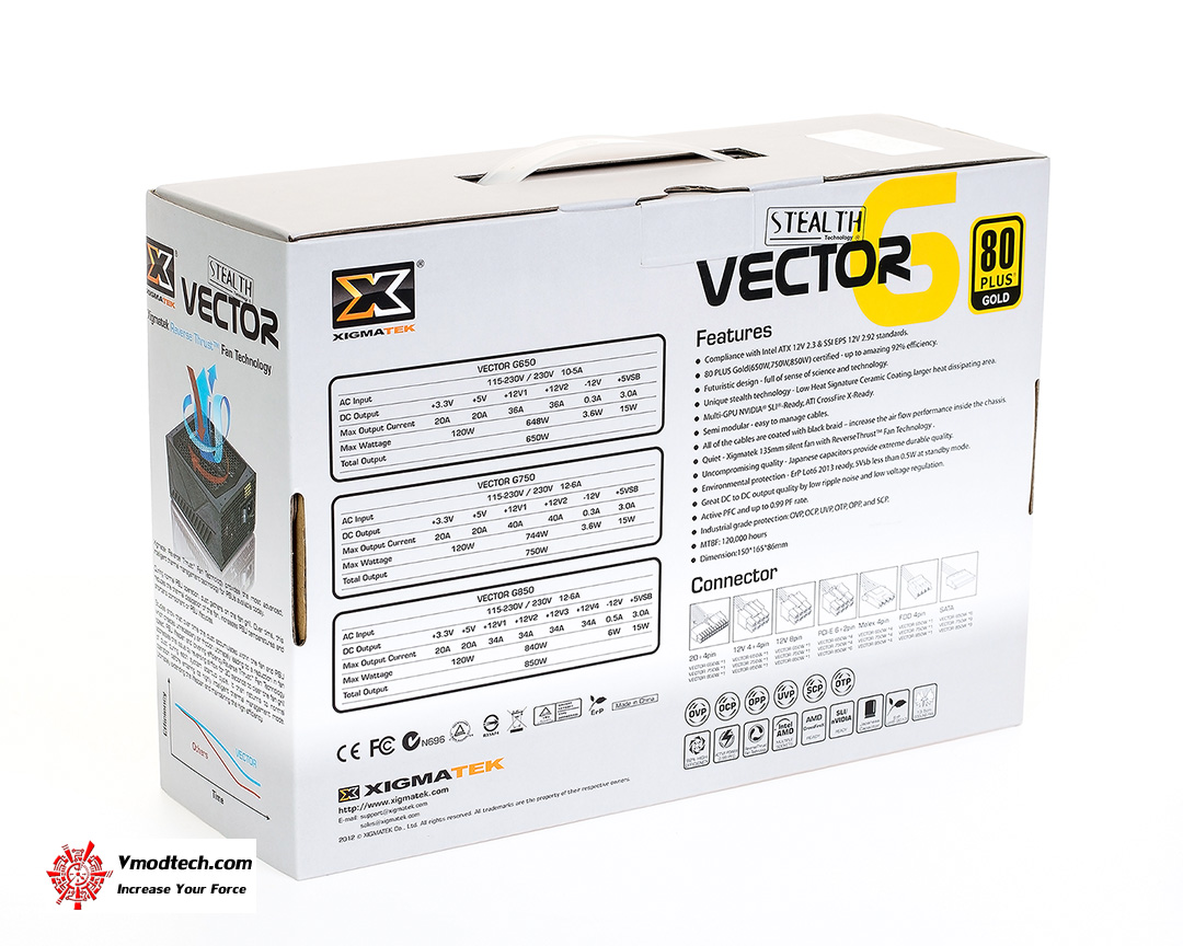 Xigmatek Vector G Series 750W 80Plus Gold เป็น Power Supply แบบ ATX 12V นะครับ มี DC Output 750W การันตีความนิ่งด้วย 80 PLUS® Bronze