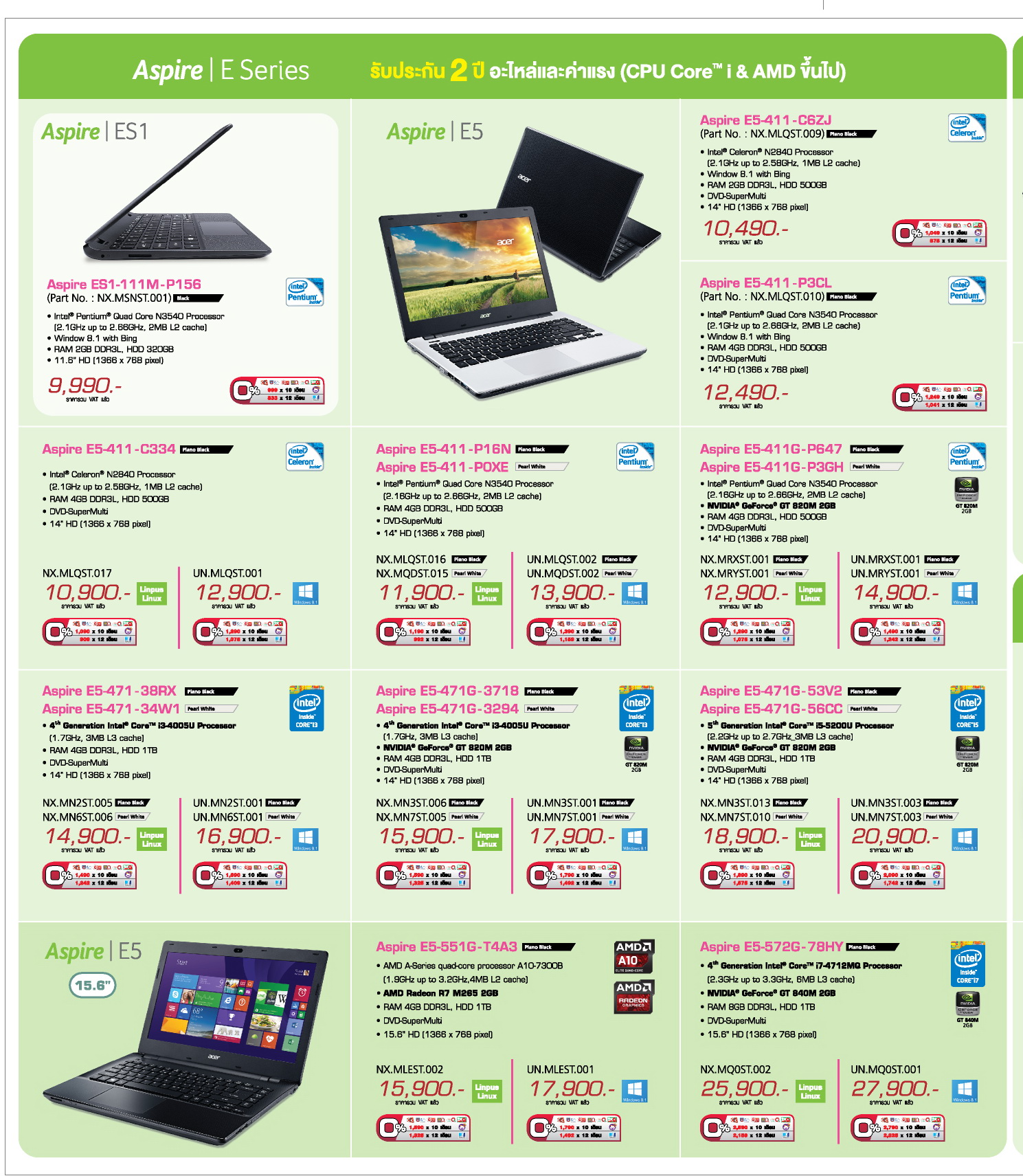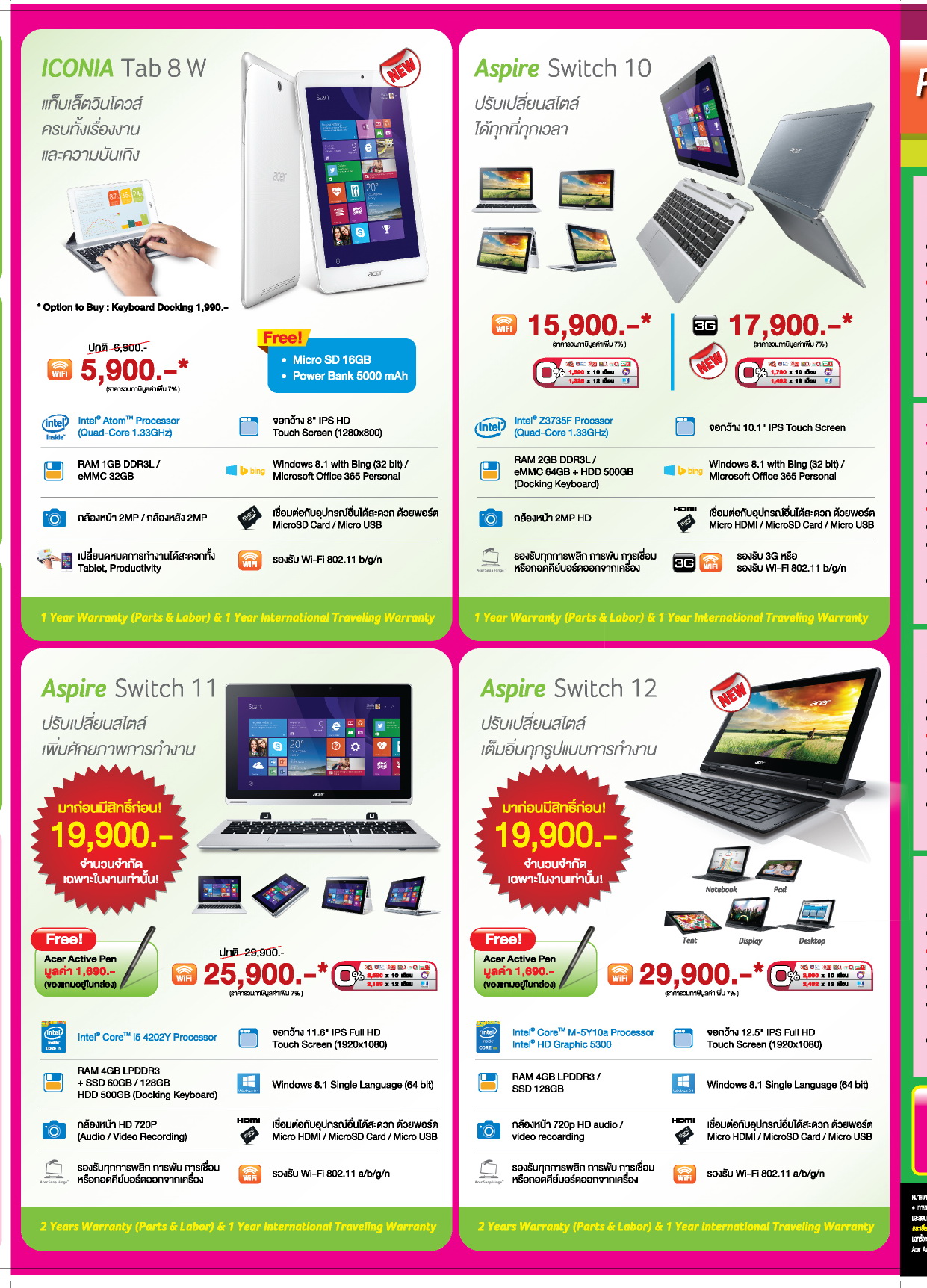 - Aspire Switch 11 core i5 ราคาพิเศษ 19,900.- (จำนวนจำกัด)