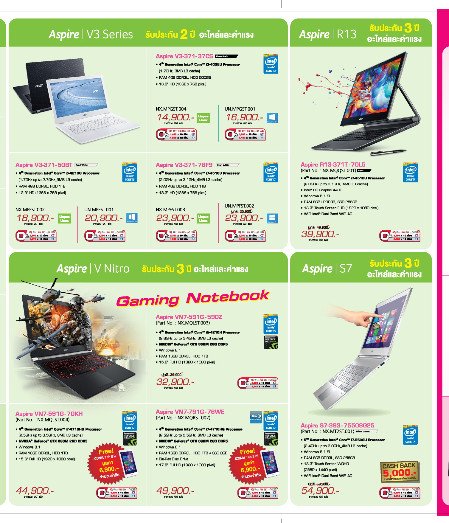 - เฉพาะวันแรกเท่านั้น Aspire V3 core i7 ราคาพิเศษ 19,900,- (จำนวนจำกัด)