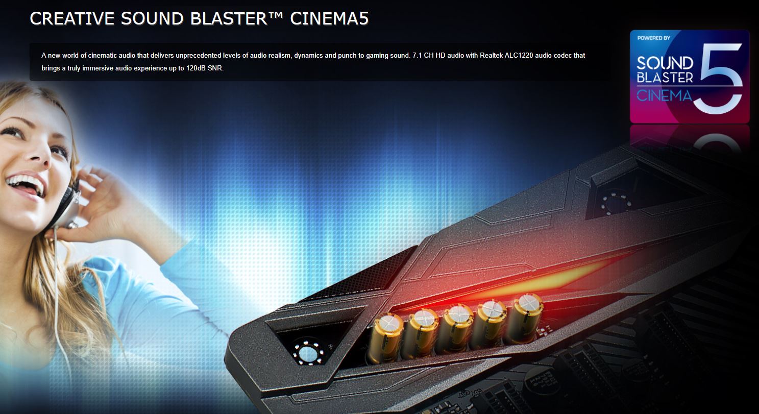 เมนบอร์ดสนับสนุนระบบเสียง 7.1-channel ที่ให้คุณภาพเสียงชั้นยอด ผ่านทางชุดสังเคราะห์เสียง Realtek ALC1220 เพื่อประสบการณ์เสียงแท้จริงได้ถึง 120dB SNR