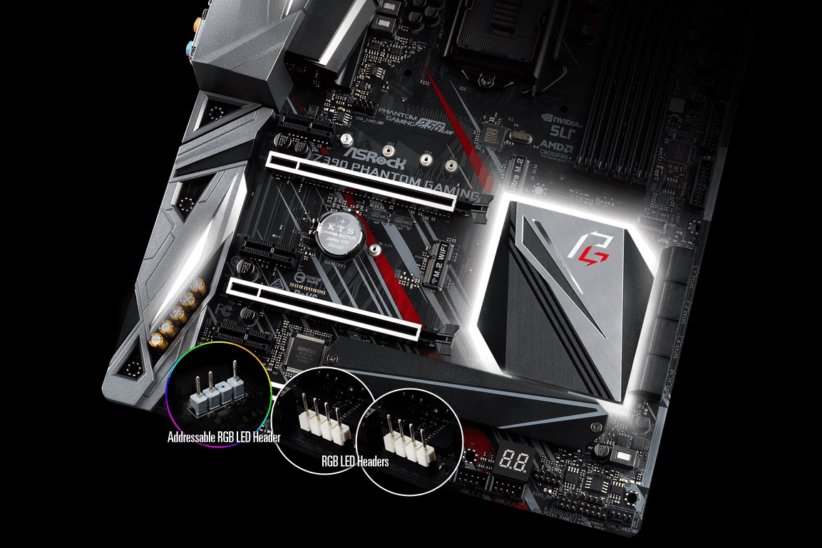 แสงไฟ RGB ที่คุณปรับได้เองตามต้องการ: ไม่ใช่แค่ความแรง แต่คุณยังเลือกปรับแสงไฟ RGB บนเมนบอร์ดให้เป็นเอกลักษณ์ของคุณได้ รวมถึงติดตั้งอุปกรณ์ที่เป็นไฟ RGB อื่นๆ ด้วยหัวต่อ addressable RGB LED header ให้ทำงานสอดคล้องกัน ผ่านทางซอฟต์แวร์ POLYCHROME Sync