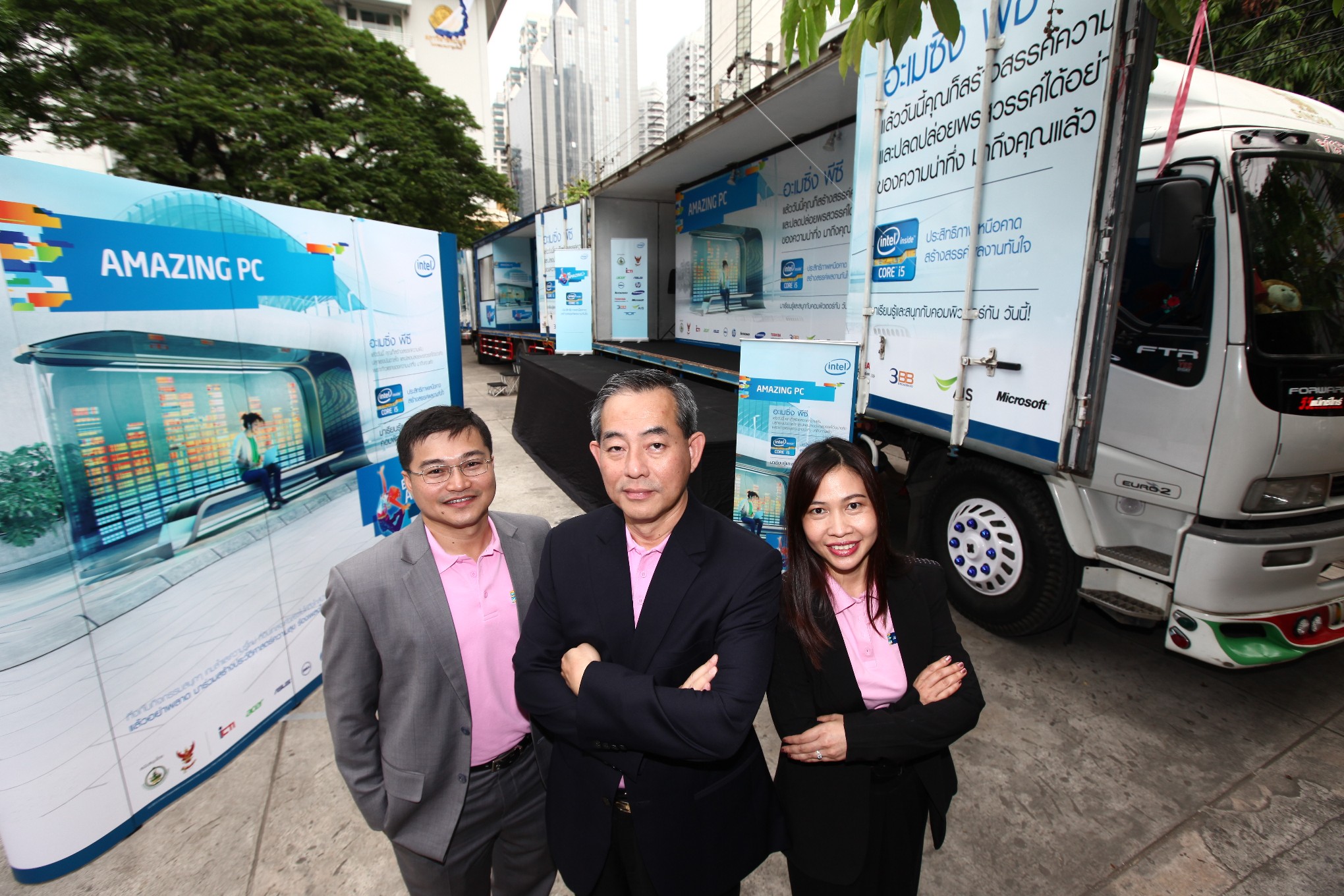 โครงการ "อะเมซิ่ง พีซี" โครงการ "อะเมซิ่ง พีซี" โดยความร่วมมือระหว่างอินเทล และพันธมิตรทางธุรกิจทั้ง 7 รายซึ่งประกอบด้วย เอเซอร์ เอซุส เดลล์ เอชพี เลอโนโว ซัมซุง และโตชิบา พร้อมการสนับสนุนด้านซอฟท์แวร์จากทางไมโครซอฟท์ เกิดขึ้นจากความตั้งใจให้ชุมชนต่างๆ สามารถเข้าถึงคอมพิวเตอร์ได้และเรียนรู้การใช้คอมพิวเตอร์ได้โดยตรง พร้อมกิจกรรมที่จะมาสร้างความสนุกสนานและความบันเทิงให้กับผู้คนในแต่ละท้องที่ ตั้งแต่วันที่ 19 เมษายนจนถึงสิ้นเดือนธันวาคมนี้ คาราวานรถบรรทุก 7 คันของอินเทลและพันธมิตรจะเดินทางไปยัง 400 จุดในทั่วทุกภูมิภาคพร้อมกับกิจกรรมเพื่อการเรียนรู้และความบันเทิง เพื่อให้ผู้คนได้สนุกสนานไปกับกิจกรรมเพื่อความบันเทิงต่างๆ ตามจุดที่รถบรรทุกเดินทางไปถึง ทั้งการเยี่ยมชมพิพิธภัณฑ์ฉลอง 40 ปีไมโครโปรเซสเซอร์ กิจกรรมการร้องคาราโอเกะและร้องเพลงเมโลดี้ เกมต่าง ๆ และโปรโมชั่นคอมพิวเตอร์ราคาพิเศษ โดยรถบรรทุกแต่ละคันจะประกอบไปด้วย อินเทล อีซี่ สเต็ปส์ ซึ่งเป็น คอร์สการสอนคอมพิวเตอร์แบบง่ายสำหรับการใช้งานประจำวัน ที่ออกแบบมาโดยเฉพาะอย่างยิ่งสำหรับ ผู้ที่มีความรู้เกี่ยวกับคอมพิวเตอร์ไม่มากนักหรือไม่มีความรู้เลย อินเทลจะร่วมกับเครือข่ายร้านค้าปลีกและ ผู้ให้บริการบรอดแบนด์สามราย คือ TOT, 3BB และเอไอเอส ในส่วนของการสนับสนุนด้านเทคนิคและอุปกรณ์ ทั้งนี้เพื่อให้สามารถใช้โปรแกรม อีซี่ สเต็ปส์ ได้ครอบคลุมมากยิ่งขึ้น และเพื่อเพิ่มโอกาสในการเข้าร่วมโครงการของคนในชุมชนและผู้ค้าปลีกอีกด้วย ผู้เข้าร่วมที่สนใจอยากจะมีคอมพิวเตอร์เป็นของตนเอง สามารถขอคำแนะนำจากร้านค้าที่ร่วม โครงการกว่า 130 ราย เพื่อให้ได้คอมพิวเตอร์ที่เหมาะสมที่สุดสำหรับการใช้งานที่บ้าน บริษัท อินเทล ไมโครอิเล็กทรอนิกส์ (ประเทศไทย) จำกัด นำโดย นายเอกรัศมิ์ อวยสินประเสริฐ (กลาง) กรรมการผู้จัดการ พร้อมด้วย สนธิญา หนูจีนเส้ง (ซ้าย) ผู้จัดการฝ่ายขาย และ ดรรชนีพร พฤกษ์วัฒนานนท์ (ขวา) ผู้จัดการฝ่ายการตลาด ร่วมเปิดตัวโครงการ "อะเมซิ่ง พีซี" ตอกย้ำประโยชน์การใช้เทคโนโลยีสำหรับชุมชน พร้อมปล่อยขบวนคาราวาน เดินสายให้ความรู้ทั่วประเทศไทย การเข้าถึงการศึกษาด้านไอที อินเทลตอกย้ำความมุ่งมั่นในการเข้าถึงคอมพิวเตอร์ด้วย "อินเทลTM อีซี่ สเต็ปส์" หนึ่งในกิจกรรมของคาราวานที่นำโปรแกรมการเรียนคอมพิวเตอร์มาสอนให้กับผู้ที่ไม่เคย หรือแทบจะไม่เคยใช้คอมพิวเตอร์ ด้วยความสนับสนุนจากกระทรวงเทคโนโลยีสารสนเทศและการสื่อสาร (ไอซีที) สำนักงานคณะกรรมการกิจกา