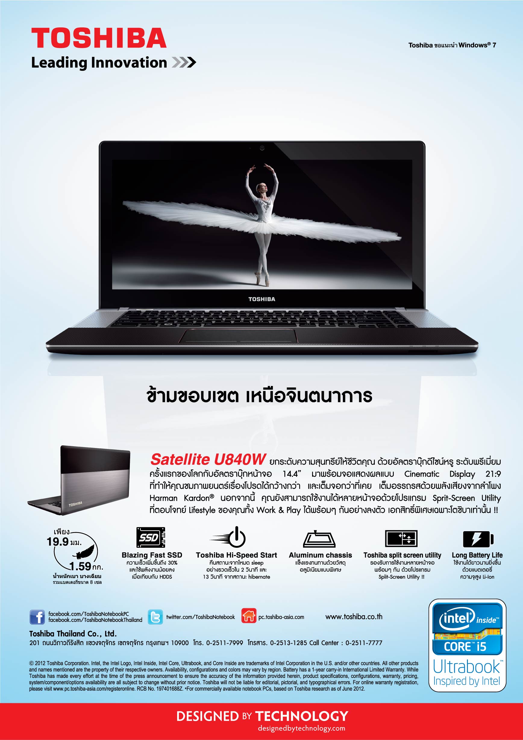 Satellite U840W ยกระดับความสุนทรีย์ให้ชีวิตคุณ ด้วยอัลตราบุ๊กดีไซน์หรู ระดับพรีเมี่ยม