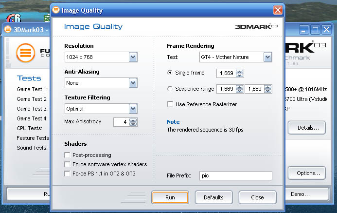 ในการทดสอบครั้งนี้ ผมใช้โปรแกรม 3Dmark03 เพื่อที่จะทดสอบในส่วนของ DirectX9 ในโหมด Image Quality และ set defualts ทั้งหมดในส่วนของ โปรแกรม และ Driver ของการ์ด ซึ่งผมได้เลือกเอา การ์ดที่ คอมแพตทิเบิล กับ DirectX9 ที่พอหาได้จากทั้ง 2 ค่าย นั้นก็คือ Ati X800pro ซึ่งได้รับการอนุเคราะห์มาจากน้อง TopFooLman และอีกตัวนึง นั้นก็คือ Fx5700Ultra ครับ