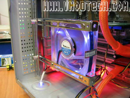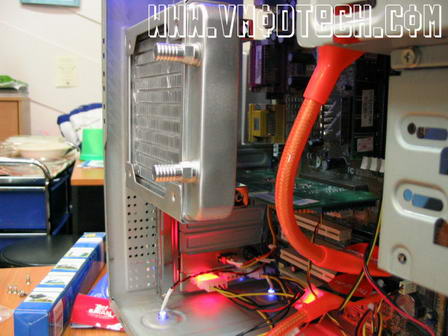 นี่ครับ ใครไม่มีที่ติดRadiatorขนาด120mm.ในเคสเดิมที่เล็กๆ ก็มีที่ติดจนได้แล้วครับ แต่อาจต้องเจาะช่องระบายอากาศที่ฝาเคสบริเวณนี้ เพื่อป้องกันการสะสมของความร้อนบริเเวณRadiatorครับ