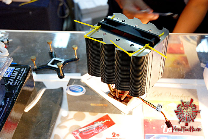 มาถึงฮีทซิงค์ตัวสุดท้ายกันแล้วนะครับ นั้นคือ Tuniq จาก Sunbeam ที่ได้รับการเอื้อเอื้อเฟื้อจากท่าน Dazeb มองจากภาพรวมแล้วฮีทซิงค์ตัวนี้ก็ถือว่าออกแบบได้ค่อนข้างดีในสายตาผมครับ มีการจัดวางพัดลมให้อยู่ตรงกลางฟิน ซึ่งจะทำให้มีปัญหาเล็กน้อย ในการใส่พัดลมขนาดใหญ่ครับ แต่ Tuniq ก็รองรับพัดลม 120mm มาตรฐานที่สำหรับติดเคส แทบทุกแบบนะครับ ดังนั้นหมดห่วงเรื่องใส่พัดลมไม่ได้แน่นอน (พัดลมเดิมก็มีแถมมาให้นะครับ) ฐานที่ใช้ยึดก็ติดตั้งไม่ง่ายไมยาก แต่ต้องถอดเมนบอร์ดออกจากเคสก่อนทำการติดตั้ง สามารถใช้มือเปล่าติดตั้งได้เลยครับ แทบจะไม่ต้องใช้ไขควง เพราะน็อตที่ใช้ยึดก็เป็นแบบมือหมุนมาให้เลย