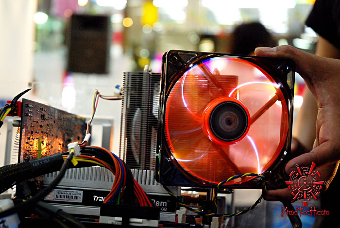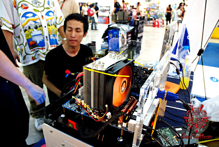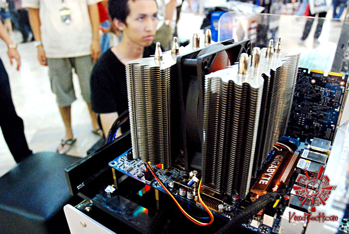 หลังจากงาน DES Roadshow จบไป หลายท่านก็คงจะทราบกันดีว่าในวันสุดท้ายนั้น พวกเราทีมงาน Vmodtech ก็ได้ระดมกำลังกันไปตามล่าฮีทซิ้งค์แบบ Heatpipe จำนวนกว่า 14 ตัวด้วยกัน เพื่อมาทำการทดสอบแบบ Live show ให้เห็นกันกลางห้างพันธุ์ทิพย์พลาซ่าเลยทีเดียวครับ โดยการทดสอบสอบนั้นก็ได้เสร็จสิ้นลุล่วงไปได้ด้วยดี ก็ด้วยความร่วมมือจากร้านค้าต่างๆที่ให้พวกเราได้ยื้มฮีทซิ้งค์ในการทดสอบประชันประสิทธิภาพ และผู้จัดงาน คือทาง Gigabyte United ที่เอื้อเฟื้อสถานที่ให้ทางเราวีมอดเทคได้ไปออกบู้ตกับเขาด้วยนั่นเองครับ (ทั้งๆที่การทดสอบฮีทซิ้งค์แทบจะไม่ได้เกี่ยวอะไรกับ DES Roadshow เล้ย)