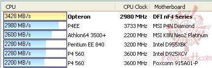 Sisoft2005 SR3 Memory Bandwidth Benchmark