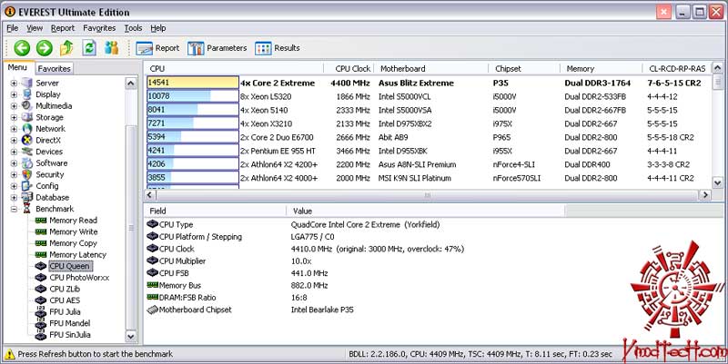 Everestคราวนี้ผมก็เทสต์ผ่านหมดทั้ง11หัวข้อที่ความเร็ว4.41Ghz แบบไม่มีหลบเช่นเดิมนะครับ ซึ่งคะแนนที่ออกมาก็สามารถแซงCPU 8Cores ที่ความเร็ว 1,866MHz แบบขาดลอย ถึงขาดหลายลอยทุกๆการทดสอบเลยครับ