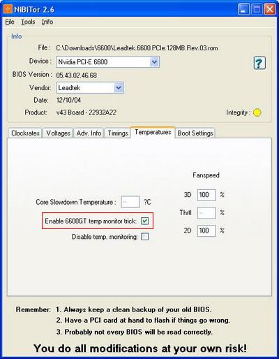 หลายคนที่ใช้GF6200อยู่คงอาจจะเคยนำไบออสของ6600แฟลชเข้าไป(เนื่องจากโครงสร้างเหมือนกัน)เพื่อให้กลายเป็นGeforce6600 แต่ถ้าท่านแฟลชแบบธรรมดาจะไม่สามารถเปิดท่ออีก4ท่อได้ ต้องมาโมด้วยRivatunerอีกทีหนึ่งเพื่อเปิดอีก4ท่อ วันนี้ผมจึงนำเอาเทคนิคแฟลชไบออส6600โดยสมบูรณ์มาฝากครับ ซึ่งหลักการง่ายๆก็คือท่านต้องลบไบออสเก่าออกก่อนแล้วจึงแฟลชไบออสของ6600เข้าไปจึงจะกลายเป็น6600โดยสมบูรณ์ มาดูรายละเอียดกันครับ จะพยามยามเขียนให้น้อยที่สุดครับอิอิ