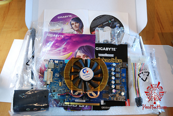 ภายในกล่องก็ของแถมถือว่าใช้ได้ครับ แต่ไม่ถึงกับสุดยอด มีสายสำหรับ AV หัวแปลง DVI พื้นฐาน แล้วก็มีหัว DVI - HDMI สำหรับการต่อเข้า LCD TV รุ่นใหม่ๆด้วยครับ อ้อ มี SPDIF ติดมาให้อีกด้วยครับ เป็นสายไว้โยงเข้าการ์ดเสียงอีกทีนึงนะ เท่าที่ผมสังเกตจากในกล่อง
