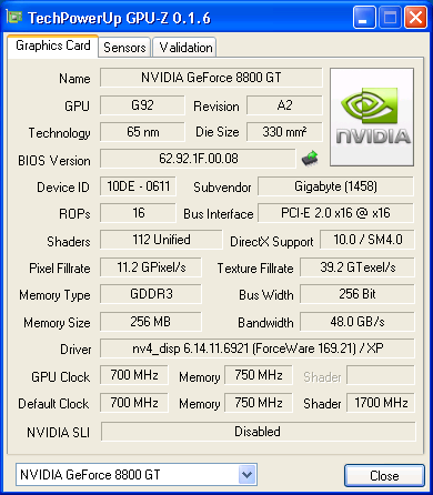 Gigabyte N88T256H (Geforce 8800GT 256mb)