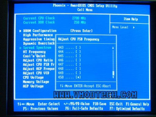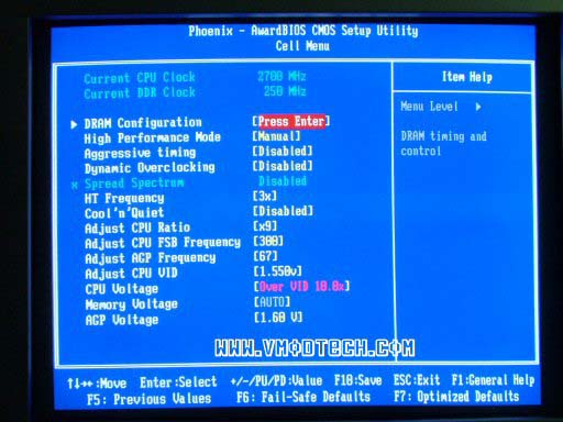 มาถึง Cell Menu ในการลากบัส สิ่งที่ต้องรู้คือ HT Frequency คูณกับ CPU FSB ไม่ควรเกิน 1000 ครับ แต่สำหรับผม ตัวคูณ LTD 3x (HT Frequency) สามารถลากไปจนถึง HTT355 เลย และสำหรับบอร์ดตัวนี้ยังมีอะไรแปลกๆอีกก็คือ ต้องเซต AGP Frequency ไว้ที่ 67 ครับ จึงจะสามารถล็อกบัส PCI ไว้ได้ แต่สำหรับไบออสเวอร์ชันใหม่ๆ ก็ไม่มีปัญหาครับ ส่วนไฟ AGP ก็เซ็ตไว้ที่ 1.60 ครับ และข้อควรระวังอีกอย่างคือในการปรับ ตัวคูณ LTD ห้ามกด Enter เพื่อเลือกตัวคูณ ครับ เพราะจะทำให้ค้างไปเลย