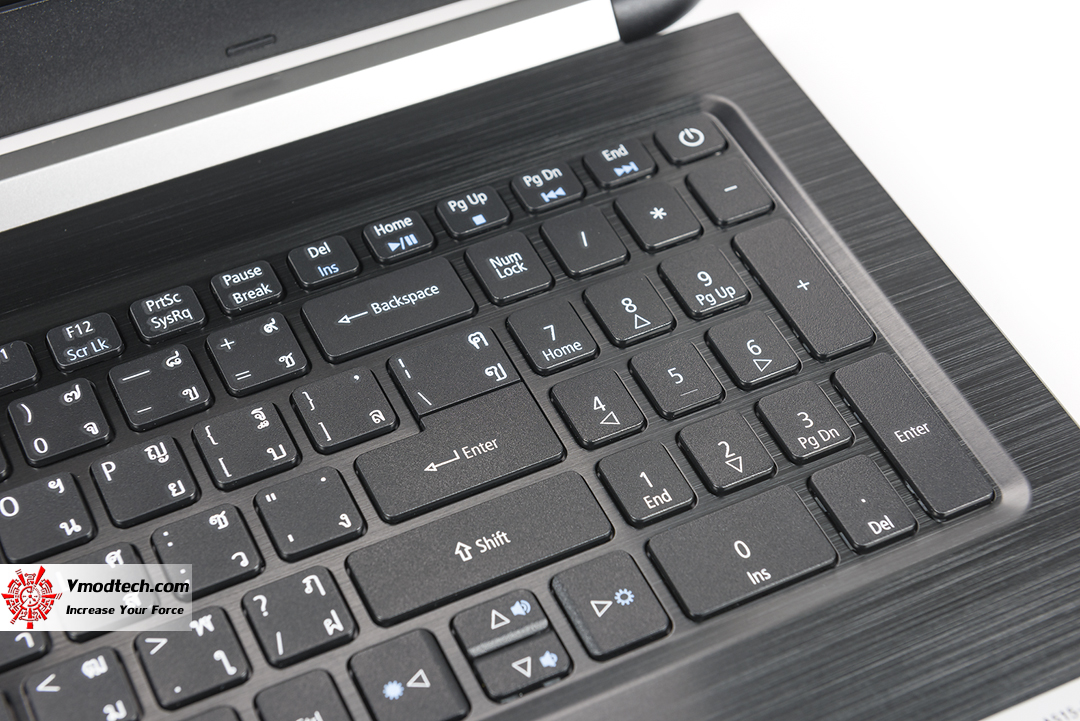 เลย์เอาท์คีย์บอร์ดนั้นใช้งานได้ง่ายๆ มีปุ่มตัวเลขมาให้ด้วยครับสำหรับ acer Aspire 5 ตัวปุ่มนั้นเป็นปุ่มเตี้ยยอดนิยม ซึ่งฟีลลิ่งนั้นก็นุ่มนวลพิมพ์ง่าย