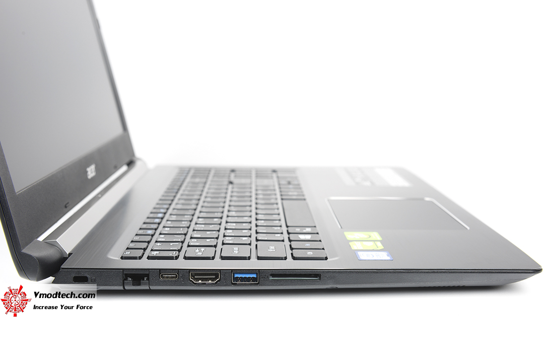 ที่ด้านข้างจะเห็นได้ชัดเลยครับว่าบางมาก และที่ด้านขวาจะมีพอร์ทเชื่อมต่อดังนี้ จากท้ายไปหน้านะครับ ช่องเสียบสายแลน ช่องเสียบ USB 3.1 Type-c หนึ่งหัว ช่องเสียบต่อจอนอกแบบ HDMI USB3.0 Type-A หนึ่งช่อง และช่อง SD การ์ดรีดเดอร์