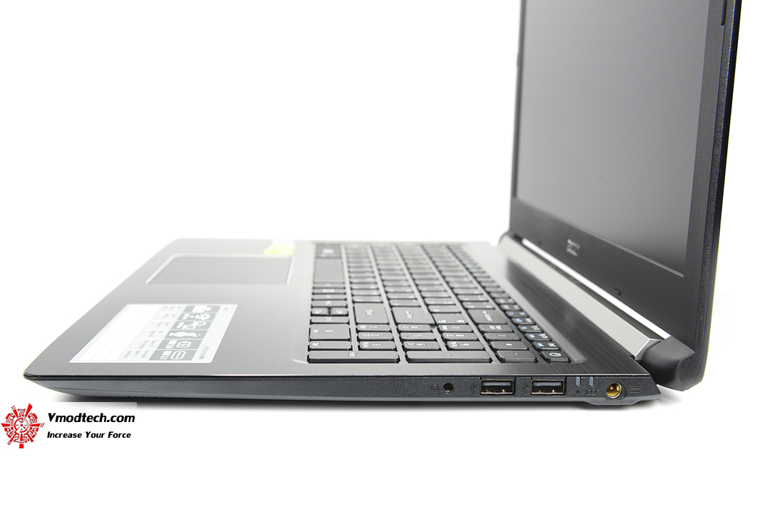 ส่วนด้านขวานั้นจะเป็นช่องเสียบหูฟัง ช่องเสียบ USB 2.0 สองช่อง และขวาสุดจะเป็นช่องเสียบไฟเลี้ยง