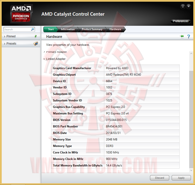 AMD Catalyst Control Center Information อ่านได้ตรงตามเสป็คที่ Acer ระบุครับคือ AMD Radeon(TM) R5 M240 2GB DDR3