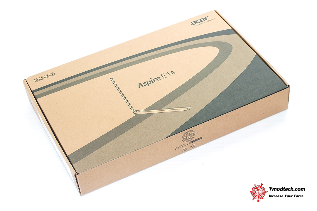 ACER Aspire E14 บรรจุอยู่ในกล่องลูกฟูกสีน้ำตาลครับ