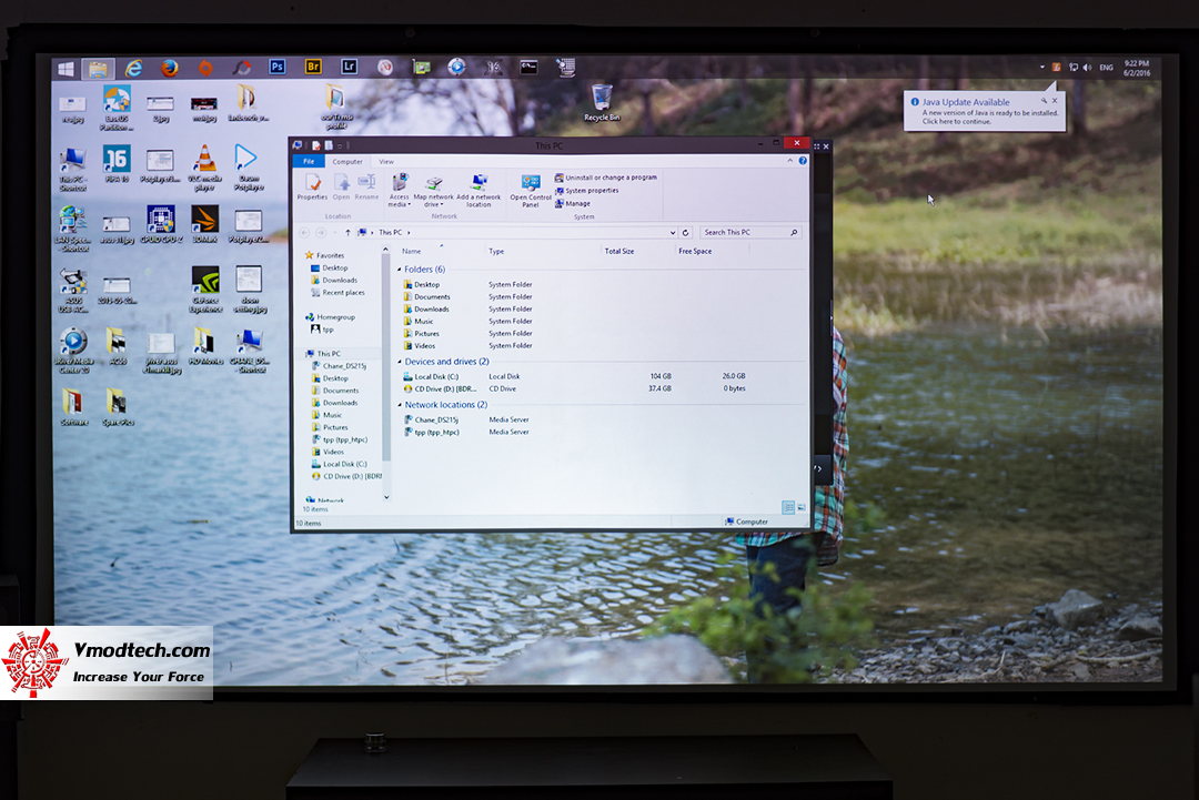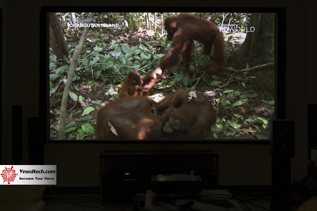 ผมเชื่อมต่อทดสอบง่ายๆโดยวาง PREDATOR Z650 บนโต๊ะหน้าโซฟาที่สูงจากพื้นประมาณฟุตเศษๆ ปรับแต่งระยะห่างจอให้ภาพมีขนาด 120 นิ้วพอดีๆโดยความห่างระหว่างจอถึงตัวโปรเจกเตอร์นั้นเพียงประมาณ 1.8 เมตร