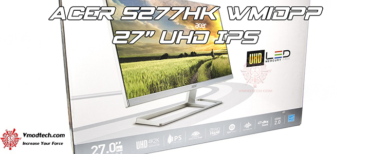 สวัสดีครับ วันนี้ผมมีรีวิวมอนิเตอร์รุ่นใหม่จาก ACER มาให้ได้ชมกัน หลังๆนี้ผลิตภัณฑ์จาก ACER นั้นก็ได้เพิ่มไลน์การผลิตที่มีเอกลักษณ์และดูมีราคาหลายๆชนิดเลยครับ จอมอนิเตอร์ก็เช่นกัน ACER นั้นก็ถือเป็นผู้ผลิตจอมอนิเตอร์หลากหลายเกรด วันนี้เรามีจอมอนิเตอร์ ACER S277HK wmidpp ที่เป็นจอ IPS ความละเอียด 4K หรือ Ultra HD และมีขนาดจอที่ 27 นิ้วมารีวิวให้ได้ชมกันครับ ออกตัวก่อนเลยว่าวัสดุนั้นแลพรีเมียมจริงๆ
