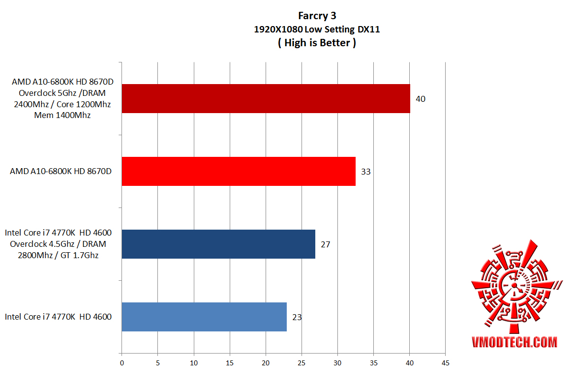 FARCRY3 ทางด้าน AMD HD 8670Dนั้นทำคะแนนพุ่งเลย 40เฟรมเรตทิ้งขาดเลยครับ