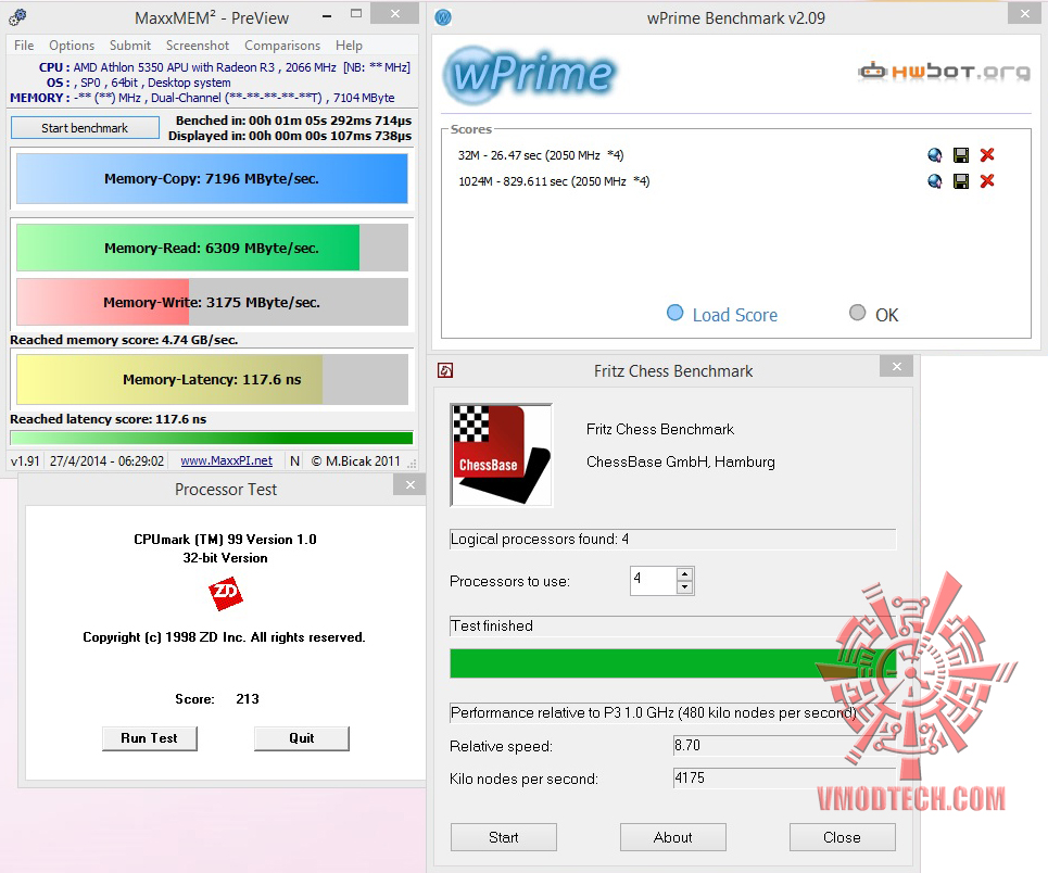 wPrime2.09 , CPUMark99 & Fritz Chess Benchmark