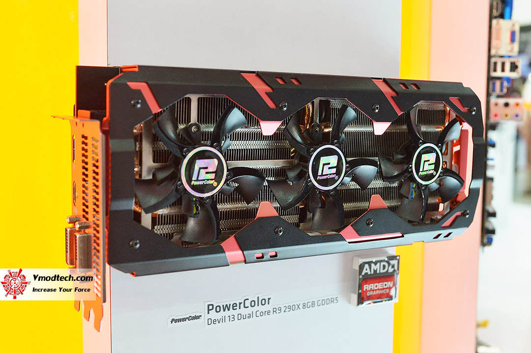 …สำหรับ Powercolor โดดเด่นด้วยกราฟฟิคการ์ดที่ออกแบบเองโดยใช้ชิป R9 290X สองตัวในการ์ดเดียว ที่มีชื่อรุ่นว่า Powercolor Devil 13 Dual Core R9 290X 8GB GDDR5 ที่ระบายความร้อนด้วยอากาศ ไม่ได้ระบายความร้อนด้วยน้ำแบบเดียวกับการ์ด AMD R9 295X