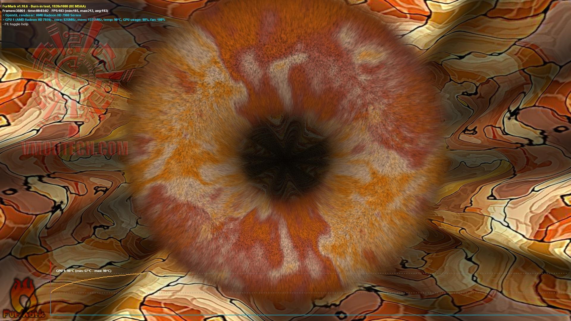 อุณหภูมิของการ์ดขณะ Furmark นั้นจะอยู่แถวๆ 90 องศาครับ ไม่ได้เบิร์นนานนะครับ การ์ดเล่นเกมส์ส่วนตัว กลัวพัง อิอิ กำ