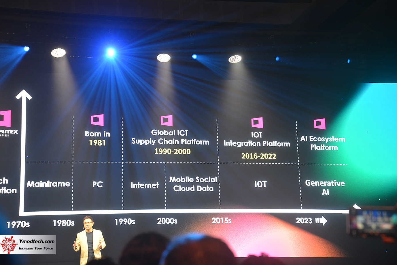 เปิดงานได้มีการเล่าประวัติความเป็นมาของงาน Computex2024 ตั้งแต่ปี 1970 จนถึงปัจจุบัน ตามยุคของไอทีที่เปลี่ยนผ่านไป