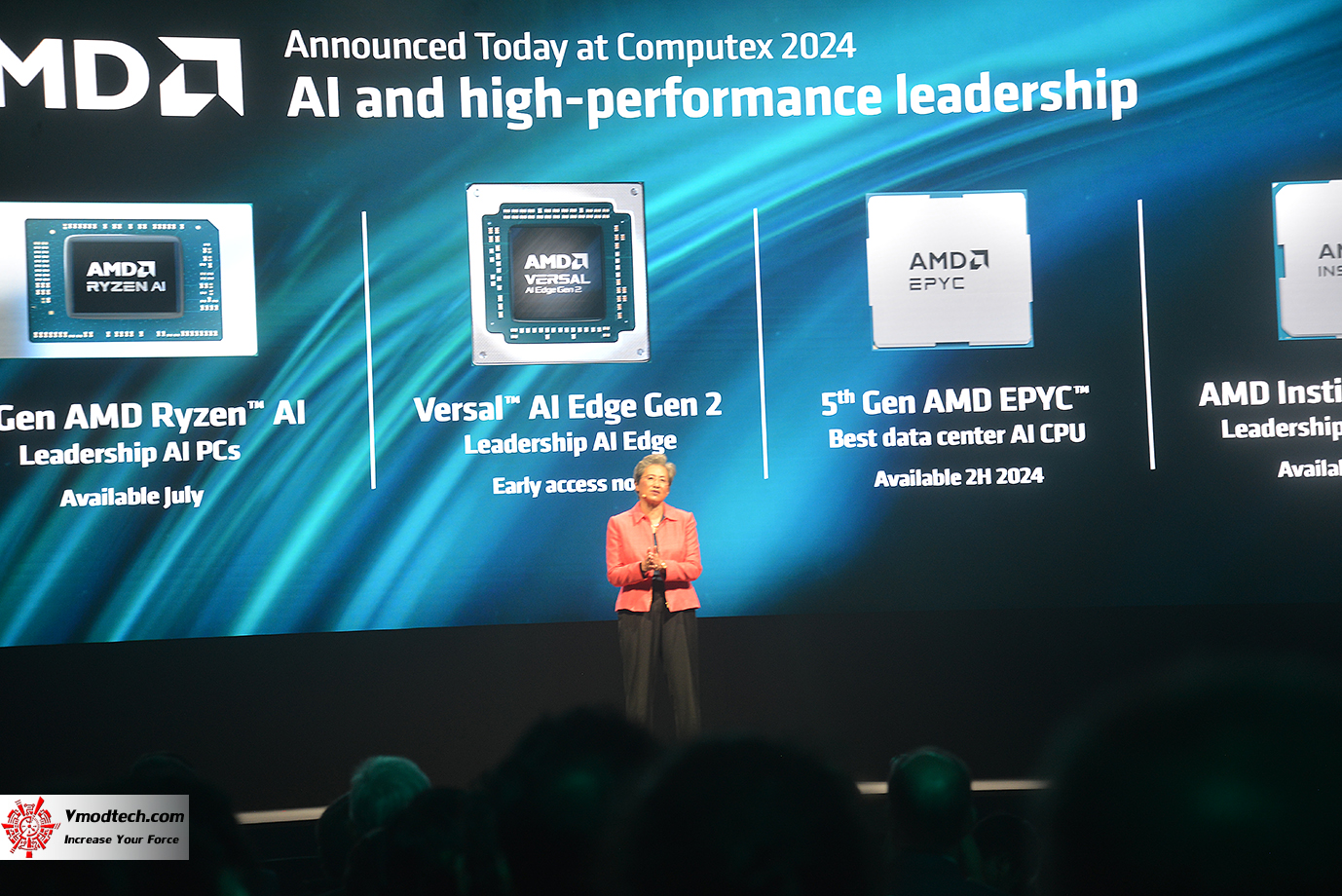 สวัสดีครับทุกท่านที่เยี่ยมชมเว็บไซต์ Vmodtech.com วันนี้ทีมงานเราก็ได้มีโอกาสไปร่วมงาน AMD Keynote ที่จัดขึ้นเพื่อเป็นการเปิดงาน Computex2024 ณ นานกังฮอล โดยสโลแกนของงานในครั้งนี้คือ Advancing AI and High Performance ก็มีการคาดกันว่าทาง AMD จะเปิดตัวซีพียูใหม่ ZEN5 รวมไปถึงซีพียูรุ่นใหญ่อื่นๆ ออกมาในงานครั้งนี้ครับ บรรยากาศนั้นก็จะมีบรรดาสื่อมวลชนจากทั่วโลกมากมายมาร่วมงานใยครั้งนี้ เดี๋ยวเราไปชมกันเลยครับว่าทาง AMD เค้ามีอะไรใหม่ๆ มานำเสนอในปีนี้