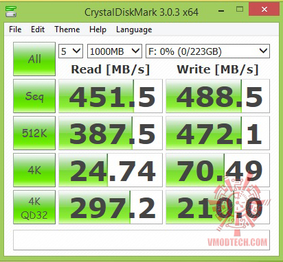 ประสิทธิภาพ ของการอ่าน/เขียนจาก CDM นั้นถือว่าแรงใช้ได้เลยครับ ผลงานการอ่านนั้นมีความเร็วมากกว่า 450 เมกกาไบท์ต่อวินาทีส่วนเขียนก็อยู่ประมาณ 480 เมกต่อวินาทีครับแรงดีเลยครับ ส่วนประสิทธิภาพการทำงานระหว่างมีข้อมูล 99เปอร์เซ็นกับดิสก์เปล่านั้นไม่ค่อยแตกต่าง ครับแม้จะใส่ข้อมูลลงไปถึง 99เปอร์เซ็นความเร็วไม่ตกครับ แรงดีมากเลยทีเดียว เรียกได้ว่าแรงไม่ตกแม้มีข้อมูลอัดมาเต็มๆก็ตามครับ